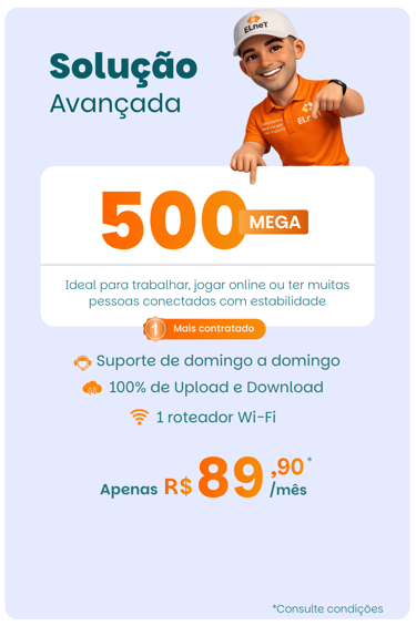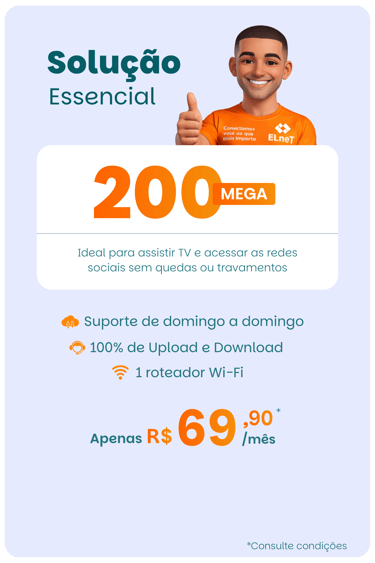 Na ELneT, oferecemos internet rápida e estável para sua casa ou empresa, com atendimento dedicado e tecnologia de ponta.